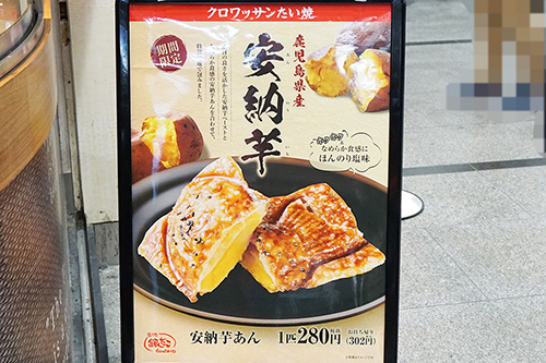 築地銀だこ ヨドバシAKIBA店では、期間限定メニューの「鹿児島県産 安納芋あん」を使ったクロワッサンたい焼きが販売されていました。