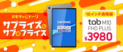 10.3インチAndroidタブレット「Lenovo Tab M10 FHD Plus」が3,980円!中古品が大量入荷