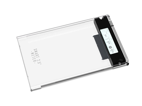 ステータスパネルを備え、内部が見える透明ボディを採用した2.5インチSATA HDD/SSD用外付けケース「S.M.A.R.T 2.5 METER(SD-U25DP1-B)」が、エアリアから発売された。価格は2,100円~2,180円。