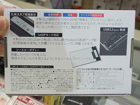 S.M.A.R.T情報を表示できる透明ボディ採用の2.5型HDD/SSD用ケースがエアリアから