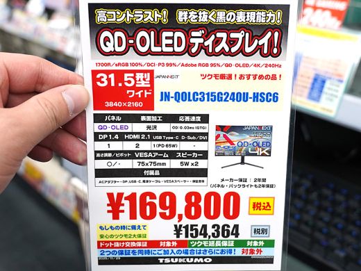 店頭価格は169,800円。ツクモパソコン本店IIでは実機展示が行われている。