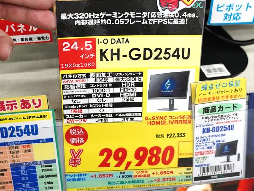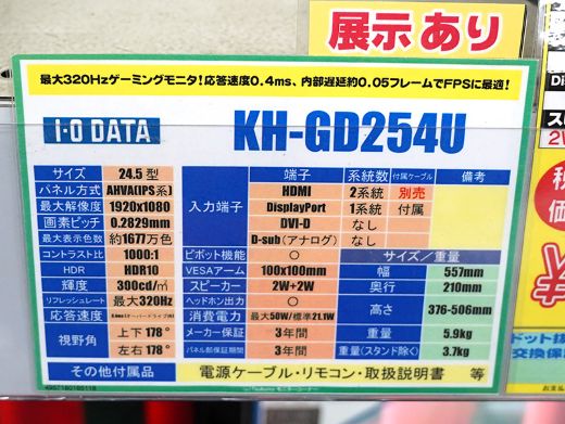 320Hz対応で29,980円の24.5型ゲーミングモニター「GigaCrysta KH-GD254U」が登場