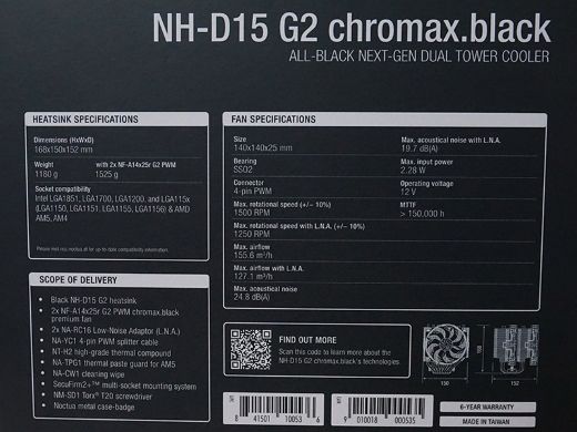 クーラー本体がブラックに塗装されているほか、付属ファンも「NF-A14x25r G2 PWM chromax.black」へと変更されている。