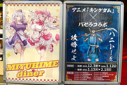パセラ秋葉原電気街店で、アニメ「キングダム」(2026年2月15日(日)まで)や、VTuber「都みゆり」・「天璋院ひめの」(2026年1月12日(月・祝)まで)との、コラボレーションを実施していました。コラボ限定フード・ドリンクの販売などを行っています。