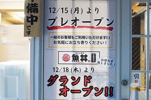 魚丼 秋葉原店のオープン告知が掲載されていました。12月15日からプレオープン、18日(木)からグランドオープンとのこと。テイクアウト専門店ではありますが、ほとんどのメニューが1,000円以内で、バリエーションも豊富。付近で働いている海鮮好きの方は利用してみてはいかがでしょうか。