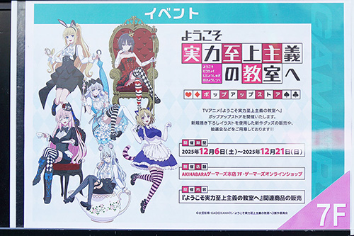 また、6階では「ようこそ実力至上主義の教室へ」ポップアップストアが開催されていました。期間は12月21日(日)まで。
