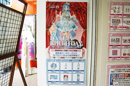 また、1階では通年イベント「デート・ア・バースデー」も開催。アニメ「デート・ア・ライブV」の各月の誕生日キャラを祝うイベントで、12月は「崇宮澪」の物販イベントを行っています。