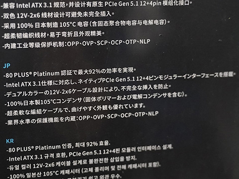 これらは、80PLUS PlatinumおよびPPLP Platinum認証を取得したフルモジュラーATX電源ユニット。ATX 3.1およびPCIe 5.1に準拠し、銅合金製の端子を採用した12V-2x6ケーブルを標準装備している。
