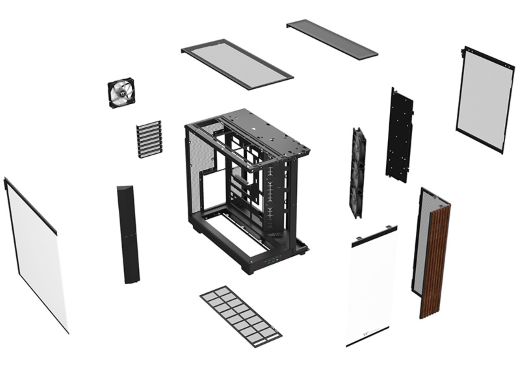 木製ラインがアクセントとなるピラーレスデザインを採用したという。フロントと左サイドに強化ガラスパネルを備え、また、デュアルチャンバー構造により十分な配線スペースとエアフローを確保したとしている。