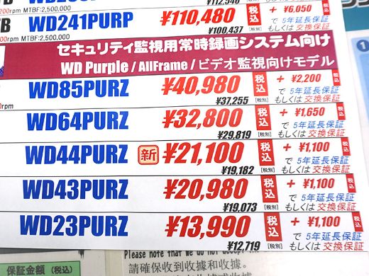 Western Digitalの監視カメラ録画向け4TB HDD「WD44PURZ」が入荷