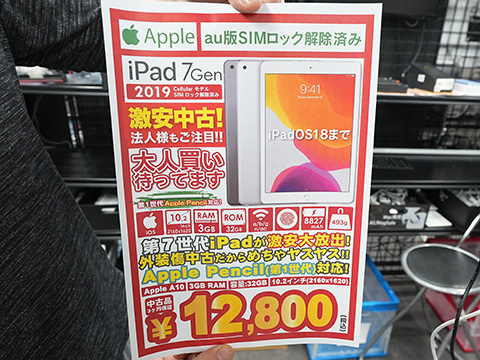 iPad 2019 セルラーモデルが12,800円で大量入荷!中古品の期間限定セール