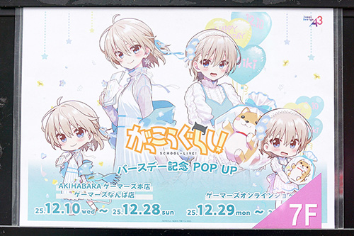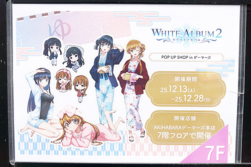 AKIHABARAゲーマーズ本店の7階では、「ホワイトアルバム2」ポップアップショップ(12月28日(日)まで)、「がっこうぐらし!」バースデー記念ポップアップショップ(12月28日(日)まで)、「終末ツーリング」ポップアップストア(12月23日(火)まで)が開催されていました。