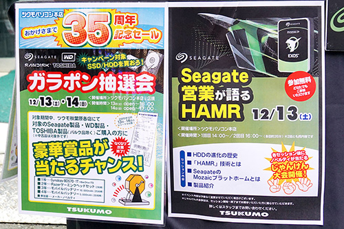 ツクモパソコン本店では、35周年を記念したガラポン抽選会が行われていました。また、「Seagate営業が語るHAMR」トークイベントも開催されていました。
