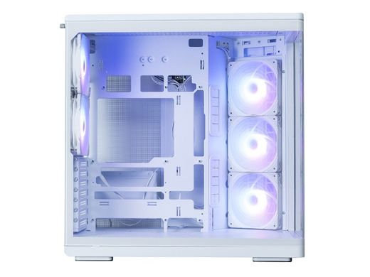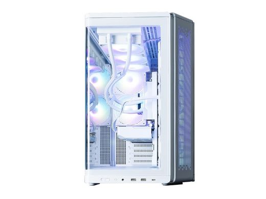 背面コネクタ設計のマザーボードにも対応しており、ケース内部のドレスアップを楽しめるとしている。デュアルチャンバー構造による広い配線スペースと高いエアフローの実現も特徴。