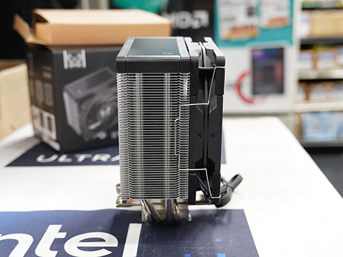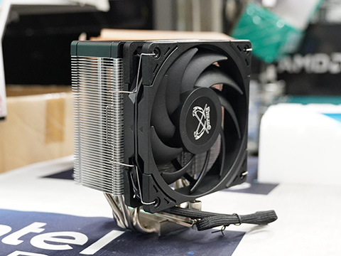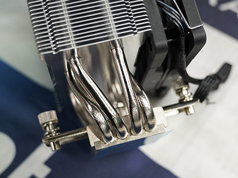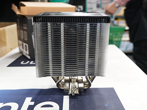 ヒートシンクは、従来モデルの基本設計を踏襲しつつ、ベースプレート周辺の構造に微調整を加えることで、最新のCPUに最適化したという。また、0.4mmのフィンの厚みにより、ヒートシンクの剛性が向上したとのこと。