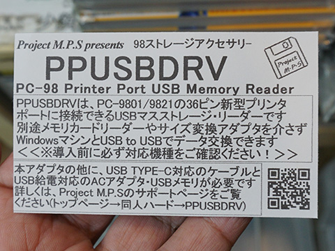 これは、PC-9821/PC-9801に標準搭載されている新型36ピンタイプのプリンタポートに対応したUSBメモリリーダー。