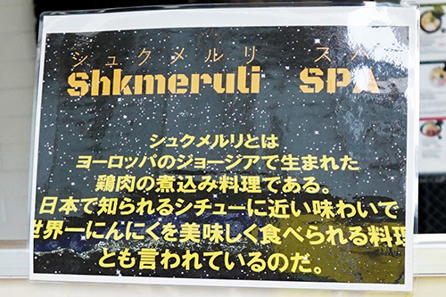 スパゲッティーのパンチョ 秋葉原店では、期間限定メニューの「シュクメルリ風パスタ」が販売されていました。ジョージアの郷土料理「シュクメルリ」をぱんちょ風にアレンジしたメニューで、たっぷりのにんにくと濃厚チーズが決めてで、「魔改造」冠するくらいなのでインパクトのある味に仕上がっていそうです。