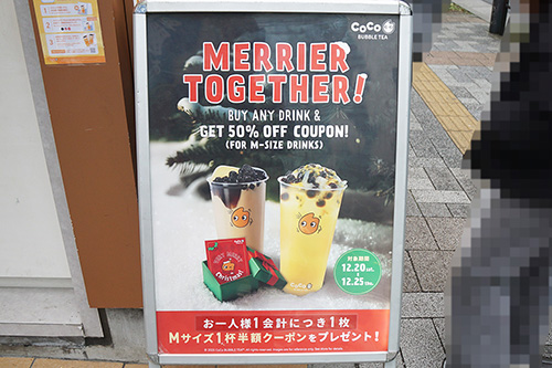 CoCo都可 秋葉原店では、クリスマス限定でクーポン券配布が行われていました。