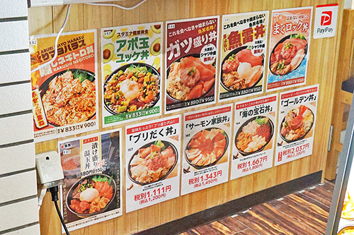 テイクアウトがメインの店舗ですが、秋葉原店はイートインスペースも併設。お手頃価格でいろんな海鮮丼を食べたいという人は、一度利用してみてはいかがでしょうか。