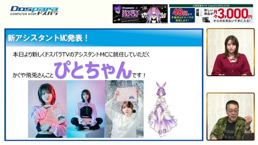 ドスパラTVの新アシスタントMCが発表、「かぐや飛兎」こと「ぴとちゃん」さんが就任