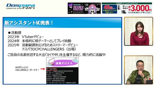 8日(木)、ドスパラTV 第447回「次期ドスパラTVアシスタントMC発表!&ドスパラ2025年間売上ランキング!」がYouTubeにて放送。2026年初の放送となった同回では、新アシスタントMCが発表された。