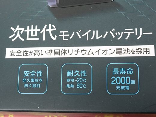 準固体リチウムイオン電池を採用したモバイルバッテリー