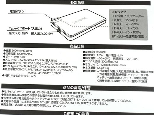 株式会社ECoreの製品で、容量は5,000mAhと10,000mAhの2種類。店頭価格は順に3,300円、4,400円。