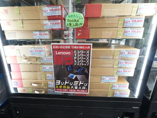 メーカー保証付きのLenovo製PC未使用品が、イオシス各店でセール中。