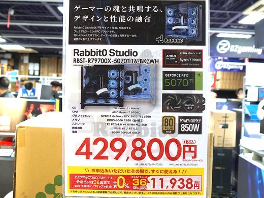 Rabbit0 StudioのゲーミングデスクトップPCがソフマップAKIBA パソコン・デジタル館に入荷。