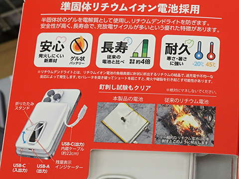 これらは、安全性と長寿命を両立した準固体リチウムイオン電池を採用したモバイルバッテリー。