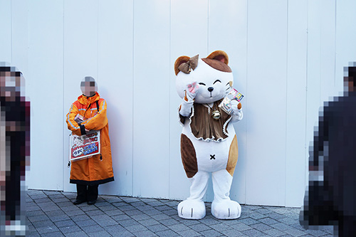 「まねきねこ」の着ぐるみがカレンダーを配布