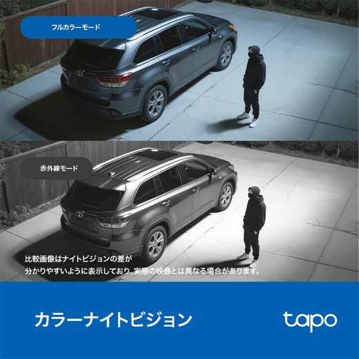3K 500万画素(2,880×1,620px)のカメラを備え、ナンバープレートや人物の顔まで細かく映し出せるとするほか、赤外線モードとスポットライトを使用したフルカラーの2モードナイトビジョン機能を備える。