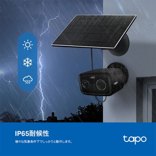 Tapo C401 KITはソーラーパネルが付属したIP65の防水防塵ワイヤレスセキュリティカメラ。