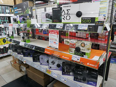 特に目立つのがビデオカードで、GeForce RTX 5090/5080/5070 Tiやメモリ16GB版GeForce RTX 5060 Tiは軒並み売り切れ、もしくはごく少量の在庫しかないというショップが多い。「休みが明けて入荷は再開しているが、すぐに売り切れる」(複数のショップ)という状況で、特にGeForce RTX 5090に関しては「毎日問い合わせがある」(TSUKUMO eX.)という。