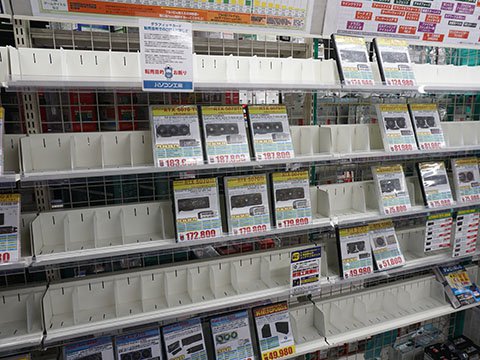 年末年始の大型連休が終わり、通常であれば品切れ商品の在庫補充が始まる時期だが、秋葉原PCパーツショップでは、一部ジャンルの棚に在庫がない状況が続いている。