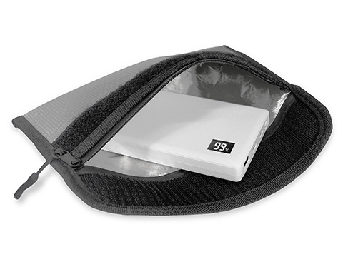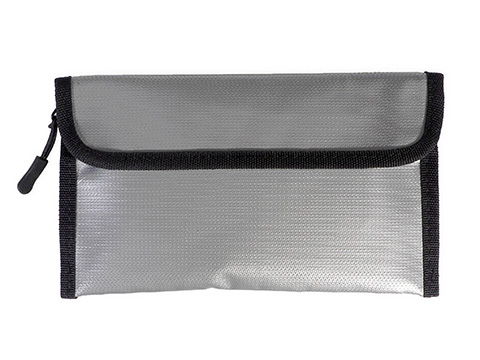モバイルバッテリーなどの電子機器の炎上を最小限に抑える防炎ポーチ。