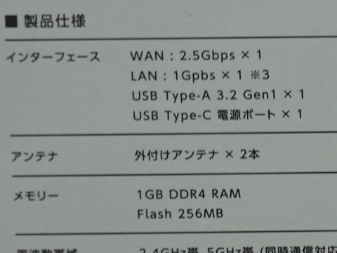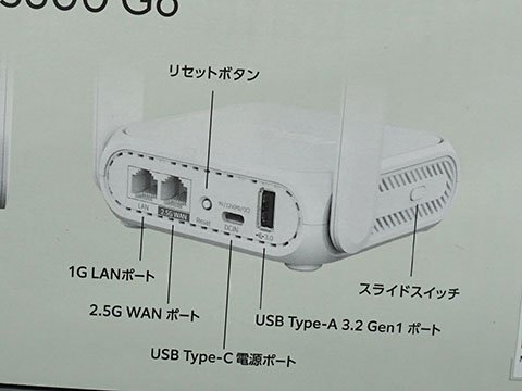 データーレートは2.4GHzが688Mbps(4096QAM)、5GHzが2,882Mbps(4096QAM+160MHz)。ポート構成は2.5Gbps WAN×1、1Gbps LAN×1。持ち運びに便利な製品だが、SIMカードスロット(eSIM含む)は備えていない。