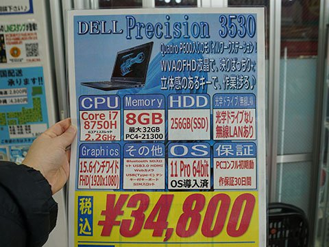 Quadro P600搭載の15.6型ノート「Precision 3530」が34,800円、中古PCセール