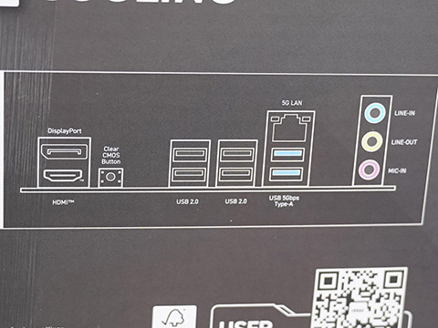 主な仕様は、メモリスロットがDDR5 DIMM×2、拡張カードスロットがPCIe x16×1、PCIe x1×1、HDMI 2.1×1、DisplayPort 1.4×1、5GbE有線LAN(Realtek)、SATAなど。M.2スロットは計2基。ソケット形状はLGA1851。