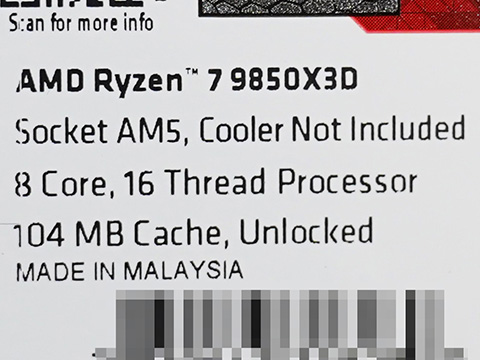 AMDのゲーミング向け8コアCPU「Ryzen 7 9850X3D(100-100001973WOF)」が発売された。