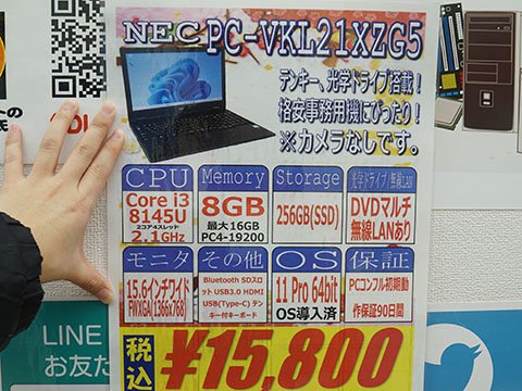 第8世代Core i3やDVDドライブ搭載のNEC製15.6型ノートが15,800円、中古品PCセール