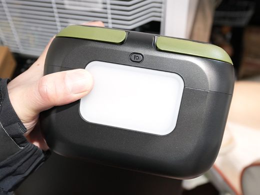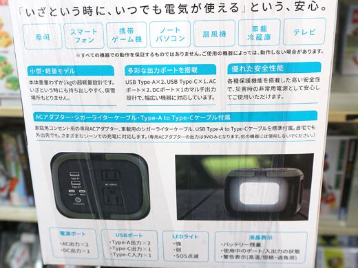 HD-PPSG120は18650リチウムイオンバッテリーを使用した電源。超軽量設計で、いざという時にも持ち出しやすく、保管場所もとらないと訴求している。本体の寸法はW145×D112×H104mm、重量は約1.07kg。