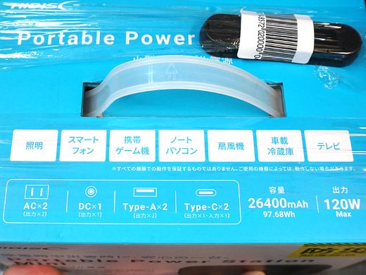 重量約1.07kgで100V/60HzのAC出力などを備えた「HIDISC 小型ポータブル電源 26400mAh 120W(HD-PPSG120)」が入荷。