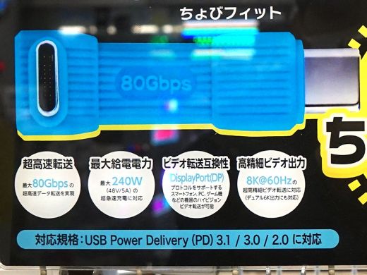 フルスペックのUSB4接続に対応し、80Gbpsのデータ転送や8K映像、最大240Wの電源供給などをサポートするとうたわれている。
