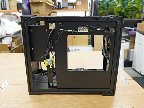 上記以外の主なスペックは、3.5/2.5インチシャドウベイが1/1、2.5インチ専用シャドウベイが1、拡張スロットが4、拡張カードスペースが最大330mmまで、対応CPUクーラー高さが最大165mmまで、搭載できる電源ユニットの奥行きが最大150mmまで(ケーブルを含まず)、素材がスチール、プラスチック、木材、電源延長ケーブル長さが約150mm。