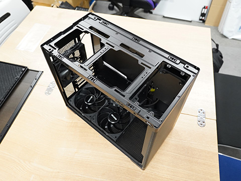 ボトムに120mmリバースファンを2基、リアに120mmファンを1基搭載し、トップには120mmファンを2基搭載できる。搭載可能ラジエーターのサイズはトップが120/240mm、リアが120mm。