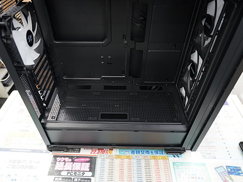 最大で10基の120mmファンを搭載可能で、フロントとトップが120mm×3または140mm×2、PSUシュラウド部が120mm×3、リアが120mm×1。ラジエーターも搭載でき、トップが360mmまで、フロントが240mmまで、リアが120mmまで対応する。
