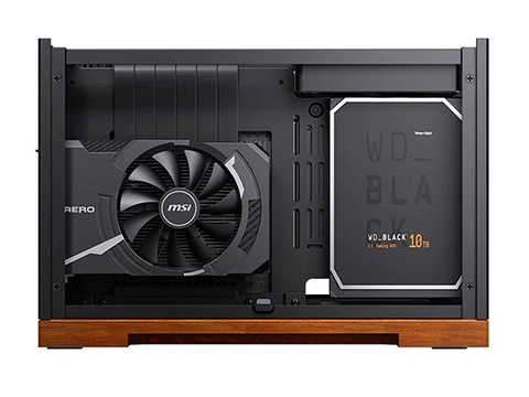 PCIe 5.0対応ライザーケーブルが付属した木板採用のMini-ITXケース