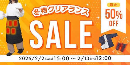 サンコー株式会社は、春まで続く冷え対策として、公式オンラインショップにて「冬物クリアランスセール」を2月2日(月)より実施している。セール期間は 2月13日(金)12:00まで。