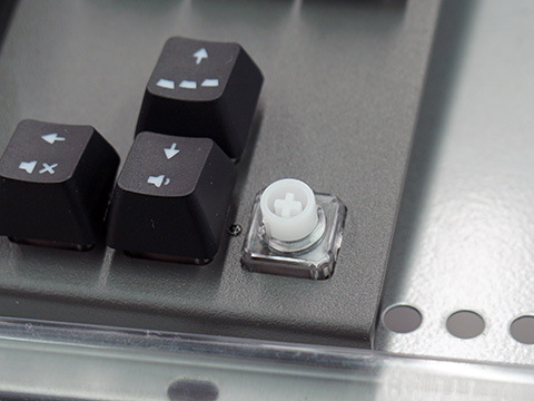 静電容量無接点方式スイッチを採用。メカニカルのキースイッチと比べて指への負担が少ないため、長時間のゲームプレイに最適としている。